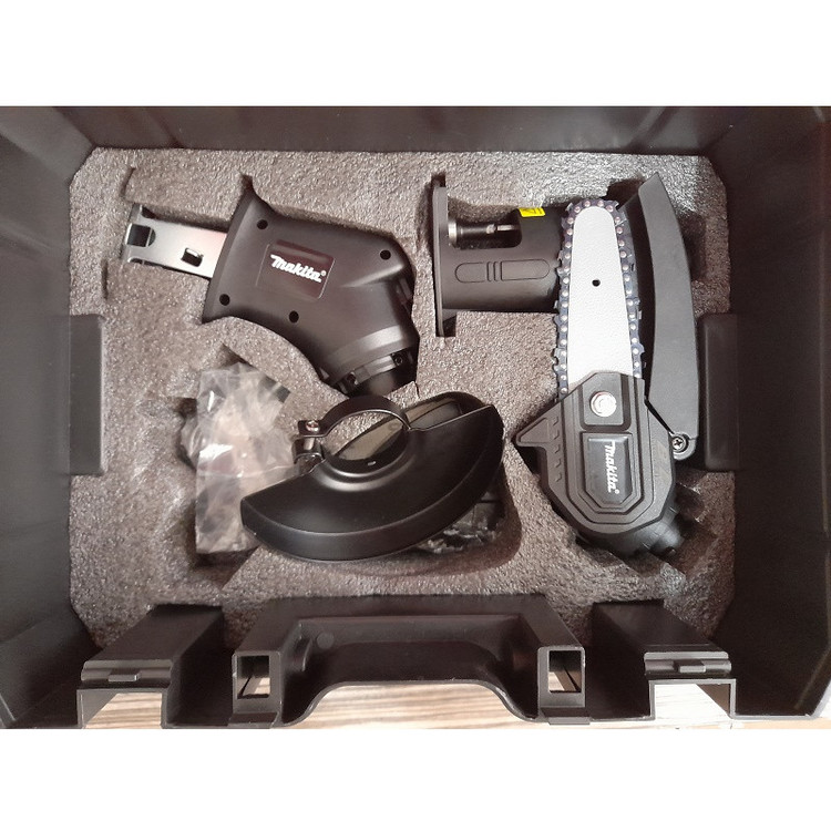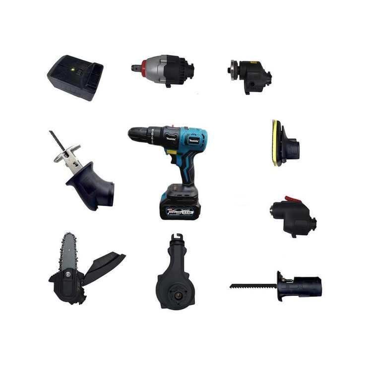 یک مجموعه ابزار بی نظیر که با این ابزار کارآمد می توانید چندین کار را انجام دهید دریل شارژی و پیچ بند که کار شما را راه می اندازد اگر به بلور نیاز دارین بلور این مجموعه می تواند انجام دهد این مجموعه دارای اره زنجیری ،اره عمود بر ،اره افقی بر، هم هست که می تواند انواع برش را برایتان انجام دهد اگر پیچ تایر ماشینتان را می خواهید باز کنید می توانید از بکس شارژی این مجموعه استفاده کنید یا برش فلز می خواهید انجام دهید از ابزار مینی فرز شارژی می توانید استفاده کنید