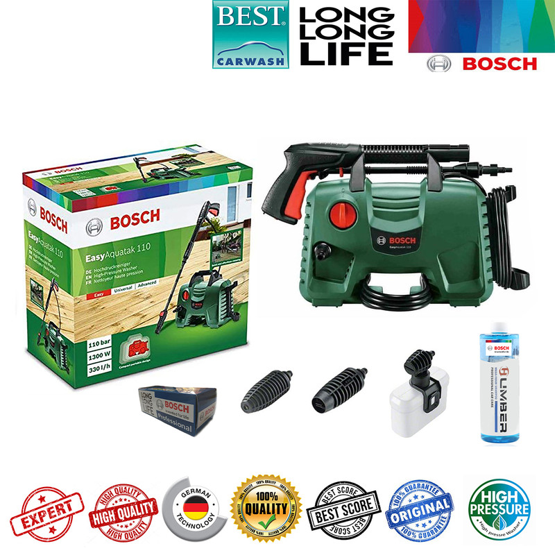 شرکت (Bosch) «بوش» یکی از بزرگترین و معروفترین شرکتهای تولید لوازم و دستگاههای خانگی و صنعتی است که سالهاست در این زمینه فعالیت میکند. اینروزها کمتر کسی است که نام این برند معروف را نشنیده باشد و از کیفیت محصولاتش بیخبر باشد. این شرکت یکی از جدیدترین محصولاتش را به نام کارواش بوش مدل Easy Aquatak 110 به بازار عرضه کرده است.کارواش بوش مدل Easy Aquatak 110 را میتوان محصولی تمام عیار از شرکت بوش آلمان دانست که همیشه در تولید ابزار آلات صنعتی در دنیا بی رقیب بوده است . کارواش بهصورت هوشمند عمل کرده و دارای سامانه توقف خودکار دستگاه است. این قابلیت باعث میشود تا هنگامی که کاربر با دستگاه کار نمیکند، دستگاه متوقف شده و در مصرف آب و برق صرفهجویی شود.این دستگاه توان بسیار بالایی برابر 1300 وات دارد که قادر است آب را با حداکثر فشار برابر 110 بار از نازل خود خارج کند. بزرگترین ویژگی این دستگاه کارواش پمپ تمام فلزی سه سیلندری آن می باشد . این دستگاه مجهز به سیستم پیشرفته فوم پاش و ساکشن می باشد . طول لنس این دستگاه 3 متر می باشد . بسیاری از موارد کیفی و زیبایی منحصر به فرد این دستگاه باعث شده این دستگاه در نوع خود در دنیا بی رقیب باشد .