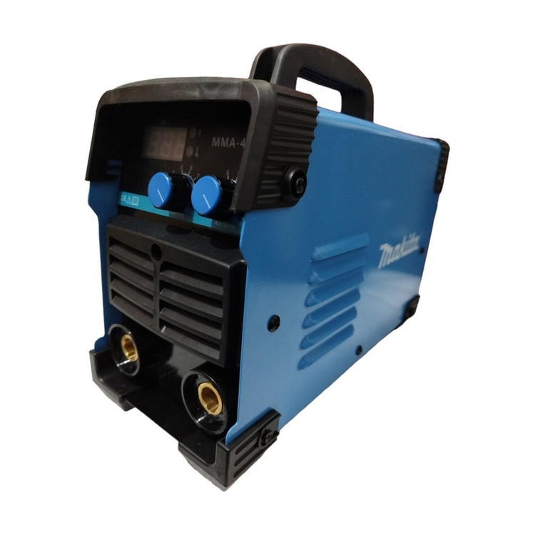 از این دستگاه نه تنها برای کارهای خانگی بلکه برای کارهای صنعتی نیز می توانید استفاده کنید. در این دستگاه می توانید تا الکترود 4 را استفاده کنید.این دستگاه در تست 300 امپر واقعی عملکرد دارد وزن این اینورتر 7 کیلوگرم است و نسبت به دستگاه های مشابه با این میزان آمپر بسیار ایده آل است بطوری که اگر بصورت سیار کار می کنید می توانید به راحتی آن را به محل کارتان حمل کنید. دسته ای که در بالای دستگاه قرار دارد حمل و جابجایی آن را برایتان راحت تر می کند.از ویژگی هایی که این اینورترجوشکاری را حرفه ای نشان می دهد 6 خازنه بودن آن و همچنین داشتن تکنولوژی سوئیچ IGBT است که آخرین فناوری در زمینه دستگاه های جوش می باشد. این سیستم به پایداری ولتاژ کمک کرده و از دستگاه در برابر نوسانات و اتصال کوتاه محافظت می کند. همچنین فن بزرگ بکار رفته در آن از گرم شدن بیش از حد دستگاه در حین جوشکاری جلوگیری میکند. همچنین اگر به دنبال دستگاه جوش با سیم پیچ مسی میگردید این دستگاه می تواند گزینه مناسبی برای شما باشد. اینورترهای با سیم پیچی مسی نسبت به سیم پیچ های آلومینیومی از کیفیت و قدرت بیشتری برخوردار بوده و حداقل نوسانات را دارند.اینورتر جوشکاری ماکیتا دارای دو ولووم می باشد. یکی از ولووم ها که زیر آن current نوشته شده میزان آمپر خروجی دستگاه را تنظیم می کند. ولووم سمت راست که Arc Force نام دارد جهت تنظیم میزان طول قوس بکار می رود، در حقیقت این تکنولوژی جهت تنظیم ولتاژ بکار رفته و از چسپندگی الکترود جلوگیری می کند. تکنولوژی Arc Force که جدیدا به اینورترهای جوش حرفه ای اضافه شده کمک می کند که جوشکاری بسیار با کیفیت و پر قدرتی داشته باشید. همچنین می توانید مقدار ولتاژ خروجی دستگاه را بر روی صفحه دیجیتالی که در قسمت جلو آن قرار دارد مشاهده کنید.همراه این دستگاه انبر جوش و انبر اتصال نیز می باشد. اگر به دنبال خرید اینورتر جوشکاری برای انجام کارهای خانگی و صنعتی می گردید پیشنهاد می کنیم خرید اینورتر جوشکاری ماکیتا 400 آمپر مدل MMA-400A را انتخاب نمایید