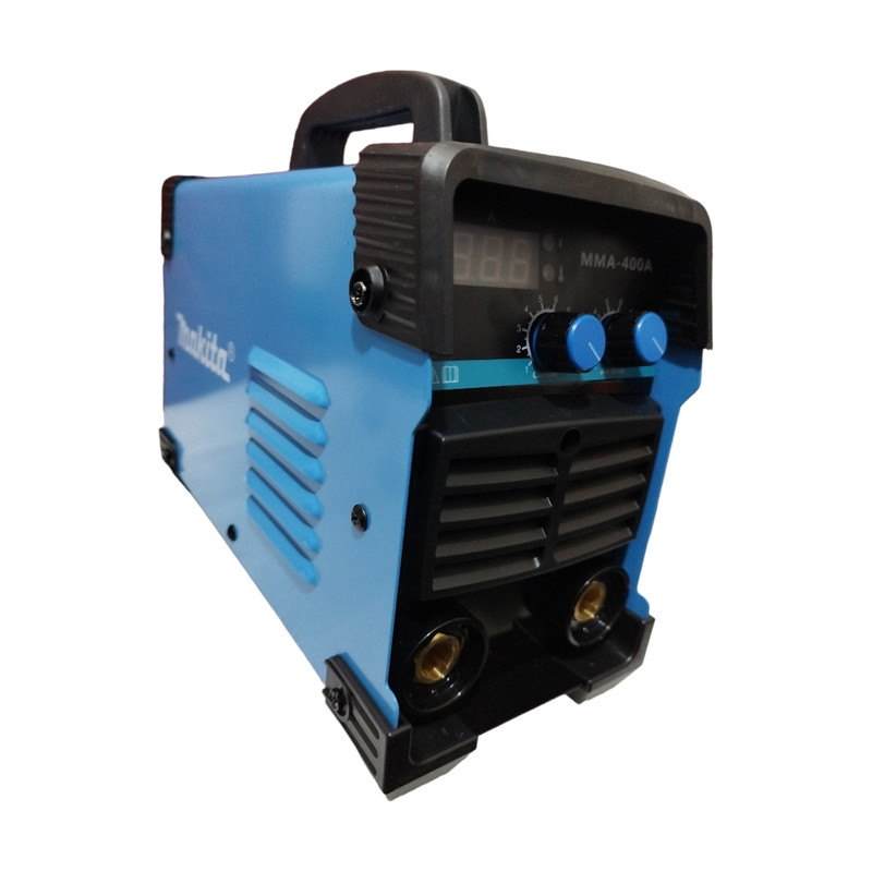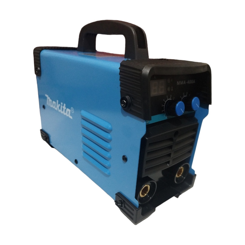 از این دستگاه نه تنها برای کارهای خانگی بلکه برای کارهای صنعتی نیز می توانید استفاده کنید. در این دستگاه می توانید تا الکترود 4 را استفاده کنید.این دستگاه در تست 300 امپر واقعی عملکرد دارد وزن این اینورتر 7 کیلوگرم است و نسبت به دستگاه های مشابه با این میزان آمپر بسیار ایده آل است بطوری که اگر بصورت سیار کار می کنید می توانید به راحتی آن را به محل کارتان حمل کنید. دسته ای که در بالای دستگاه قرار دارد حمل و جابجایی آن را برایتان راحت تر می کند.از ویژگی هایی که این اینورترجوشکاری را حرفه ای نشان می دهد 6 خازنه بودن آن و همچنین داشتن تکنولوژی سوئیچ IGBT است که آخرین فناوری در زمینه دستگاه های جوش می باشد. این سیستم به پایداری ولتاژ کمک کرده و از دستگاه در برابر نوسانات و اتصال کوتاه محافظت می کند. همچنین فن بزرگ بکار رفته در آن از گرم شدن بیش از حد دستگاه در حین جوشکاری جلوگیری میکند. همچنین اگر به دنبال دستگاه جوش با سیم پیچ مسی میگردید این دستگاه می تواند گزینه مناسبی برای شما باشد. اینورترهای با سیم پیچی مسی نسبت به سیم پیچ های آلومینیومی از کیفیت و قدرت بیشتری برخوردار بوده و حداقل نوسانات را دارند.اینورتر جوشکاری ماکیتا دارای دو ولووم می باشد. یکی از ولووم ها که زیر آن current نوشته شده میزان آمپر خروجی دستگاه را تنظیم می کند. ولووم سمت راست که Arc Force نام دارد جهت تنظیم میزان طول قوس بکار می رود، در حقیقت این تکنولوژی جهت تنظیم ولتاژ بکار رفته و از چسپندگی الکترود جلوگیری می کند. تکنولوژی Arc Force که جدیدا به اینورترهای جوش حرفه ای اضافه شده کمک می کند که جوشکاری بسیار با کیفیت و پر قدرتی داشته باشید. همچنین می توانید مقدار ولتاژ خروجی دستگاه را بر روی صفحه دیجیتالی که در قسمت جلو آن قرار دارد مشاهده کنید.همراه این دستگاه انبر جوش و انبر اتصال نیز می باشد. اگر به دنبال خرید اینورتر جوشکاری برای انجام کارهای خانگی و صنعتی می گردید پیشنهاد می کنیم خرید اینورتر جوشکاری ماکیتا 400 آمپر مدل MMA-400A را انتخاب نمایید